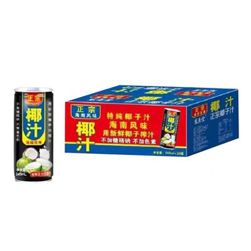 青岛莲山特产有限公司主打产品宏易堂江中正宗椰汁饮品。