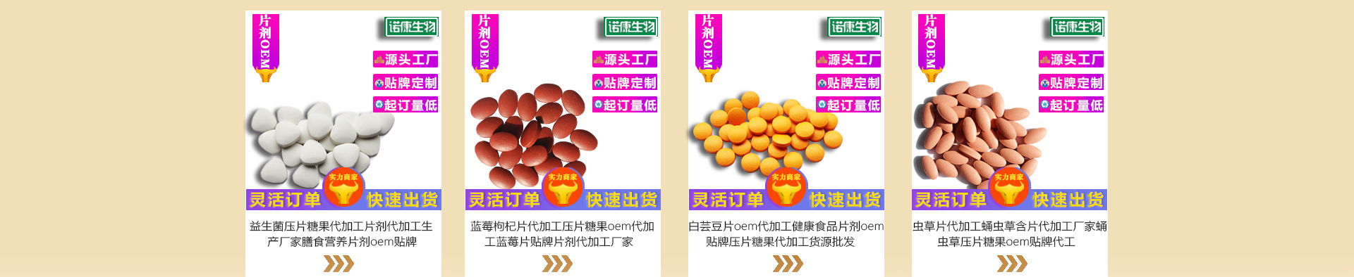 东营诺康生物技术有限公司自2007年进入保健食品行业,注册资金500万元,东营高新区石油科技产业园建设厂房5000余平方米,建设GMP标准化车间3000余平方米,主要经营保健食品剂型有软胶囊、硬胶囊、片剂、粉剂、颗粒剂,功能食品剂型有压片糖果、凝胶糖果、植物草本固体饮料、果蔬固体饮料、蛋白质粉、益生菌固体饮料、代用茶的生产及OEM代加工业务。车间配备两台250型软胶囊机器,年生产能力8亿粒。两台1200型进口全自动硬胶囊填充机、5台各型号全自动压片机、12台粉剂全自动包装机。公司下设东营倍康生物科技有限公司。 东营倍康生物位于东营市黄河口高新技术企业创业园,占地面积10000平方米,其中厂房面积5000平方米,车间于 2014 年 1 月顺利通过 GMP标准化车间认证,是压片糖果、固体饮料、方便食品等功能食品专业生产加工及代加工的公司;是一家专业从事功能食品研发、生产、销售的高新企业。收起